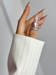 Idealny do sesji zdjęciowych, ten rękaw wprowadza do zdjęć wyrafinowanie i elegancję, stanowiąc doskonałe tło dla piękna paznokci.
