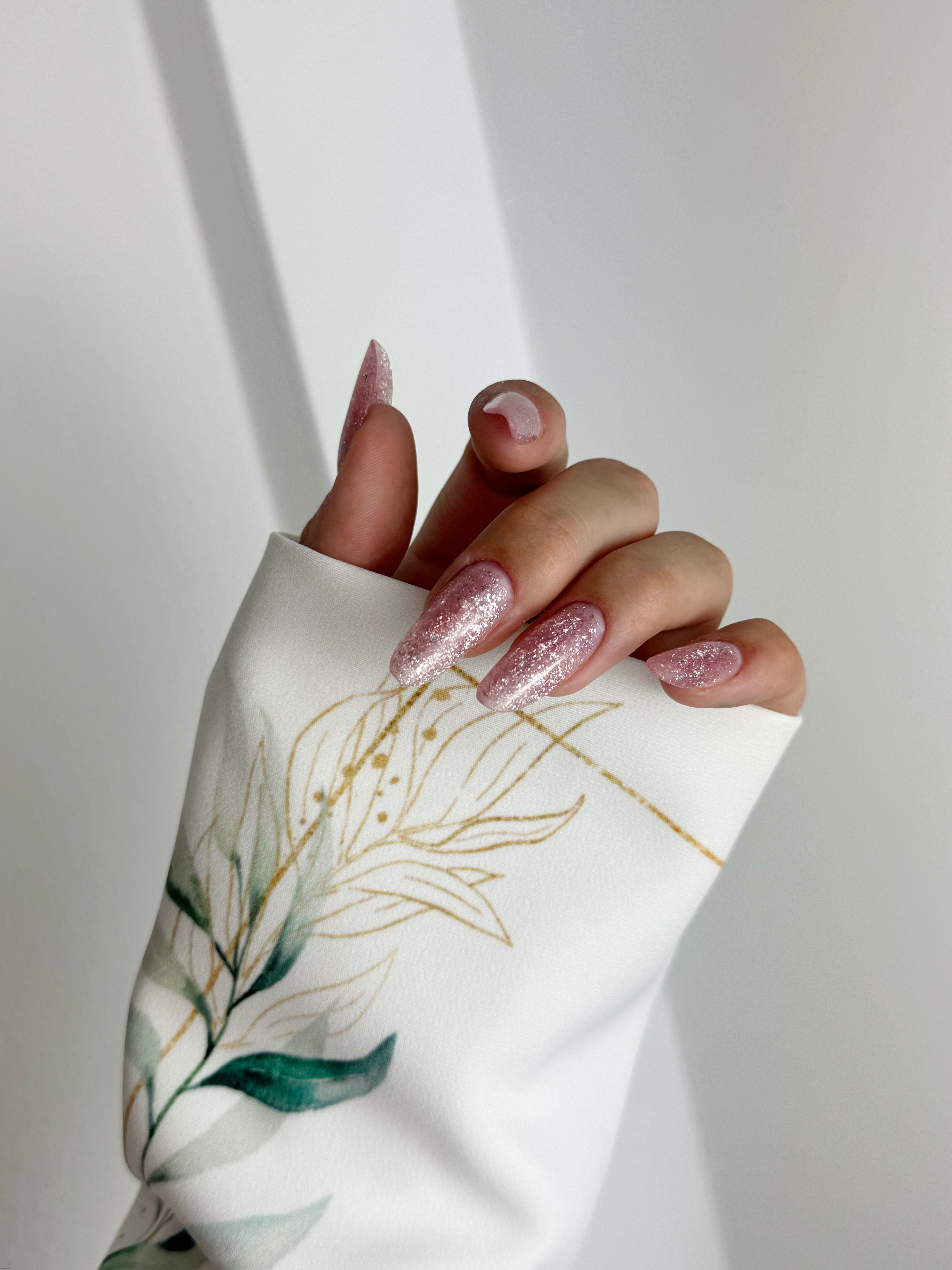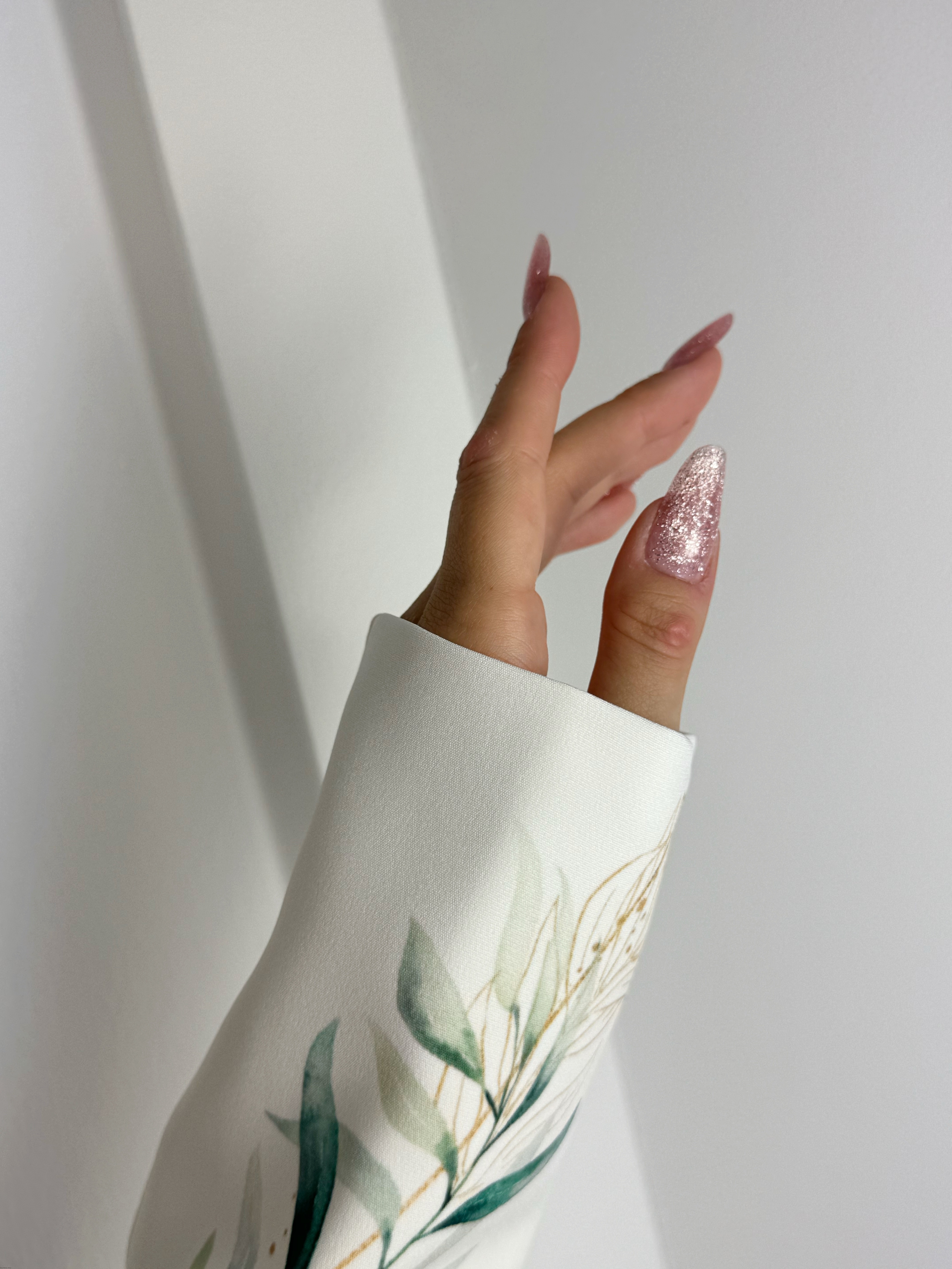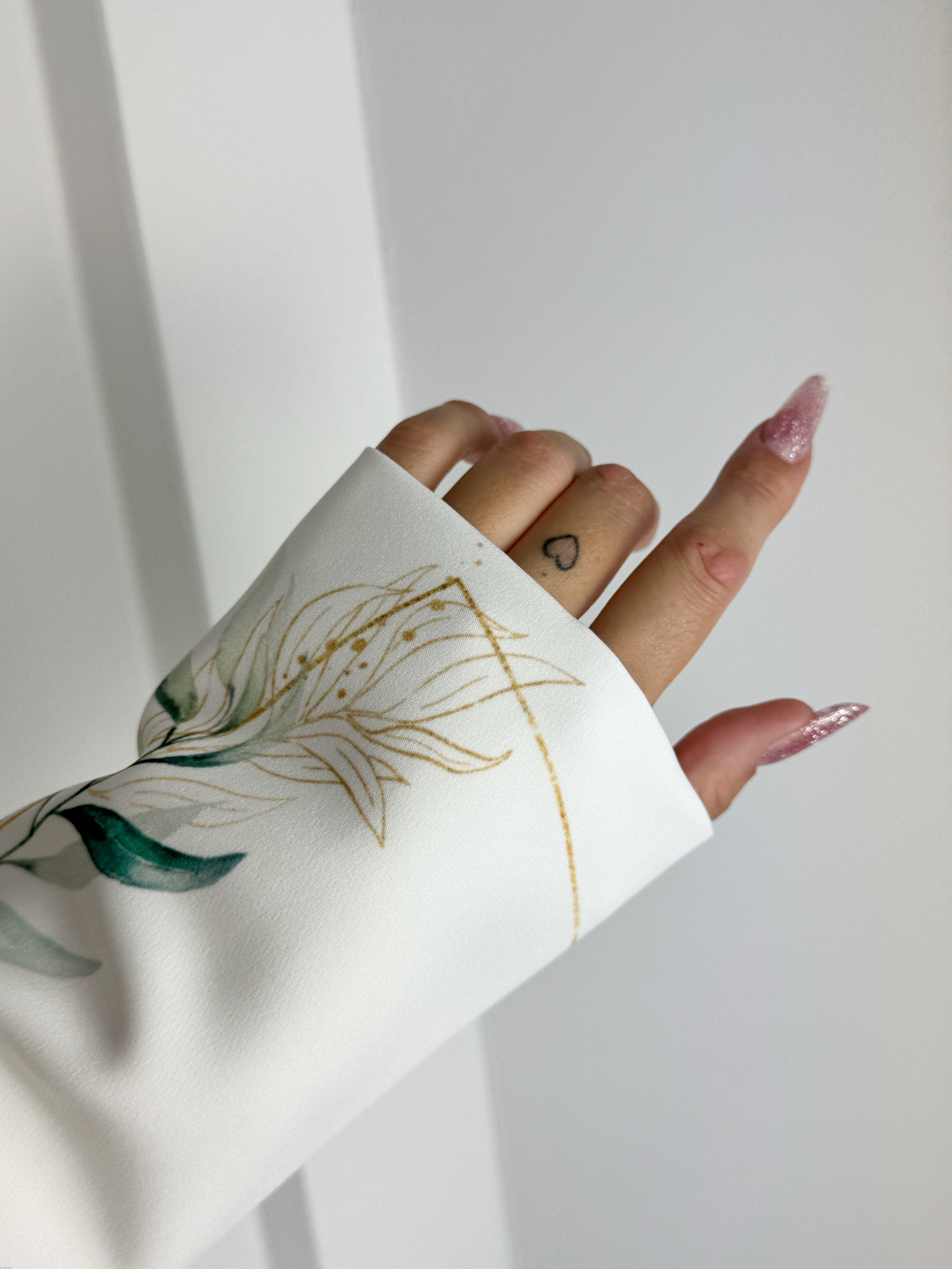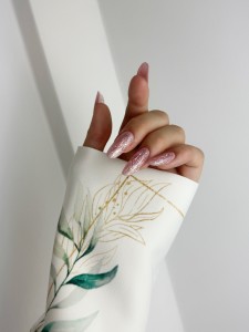Idealny do sesji zdjęciowych, ten rękaw wprowadza do zdjęć wyrafinowanie i elegancję, stanowiąc doskonałe tło dla piękna paznokci.