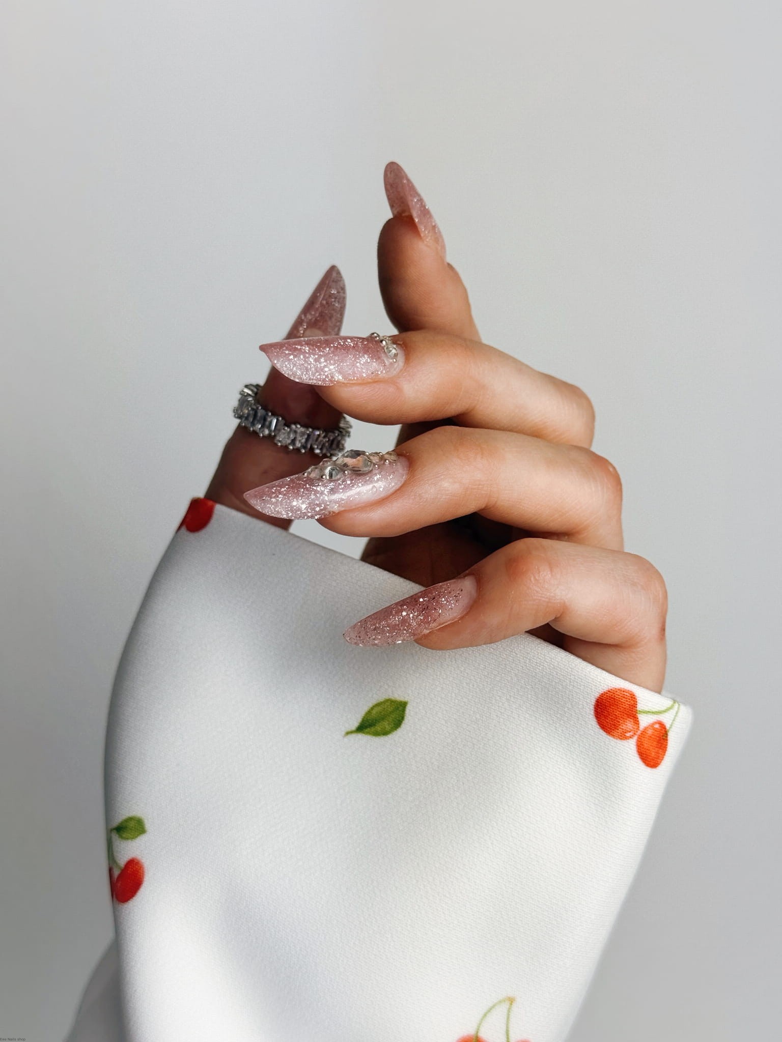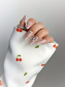 Idealny do sesji zdjęciowych, ten rękaw wprowadza do zdjęć wyrafinowanie i elegancję, stanowiąc doskonałe tło dla piękna paznokci.
