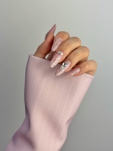 Idealny do sesji zdjęciowych, ten rękaw wprowadza do zdjęć wyrafinowanie i elegancję, stanowiąc doskonałe tło dla piękna paznokci.