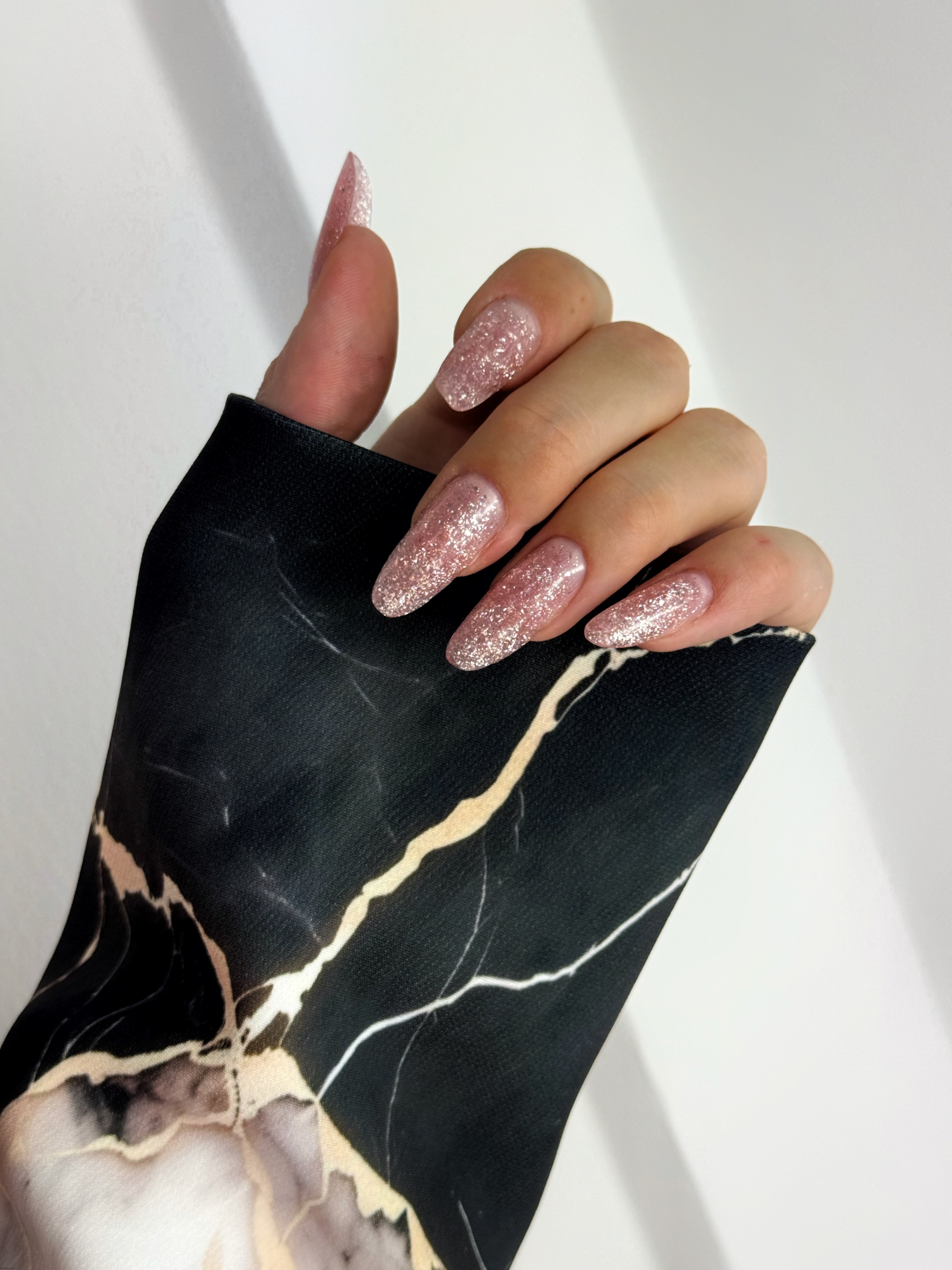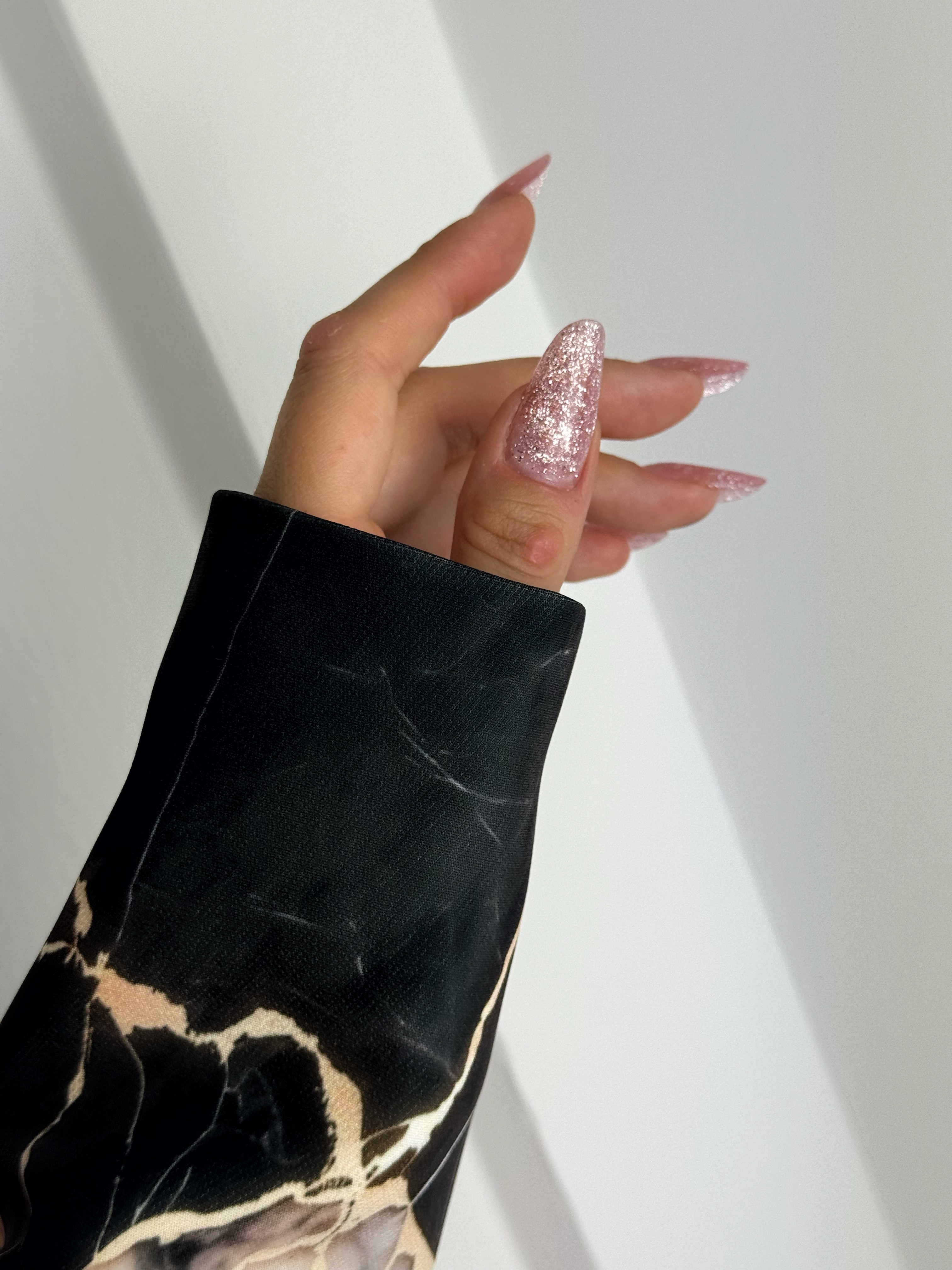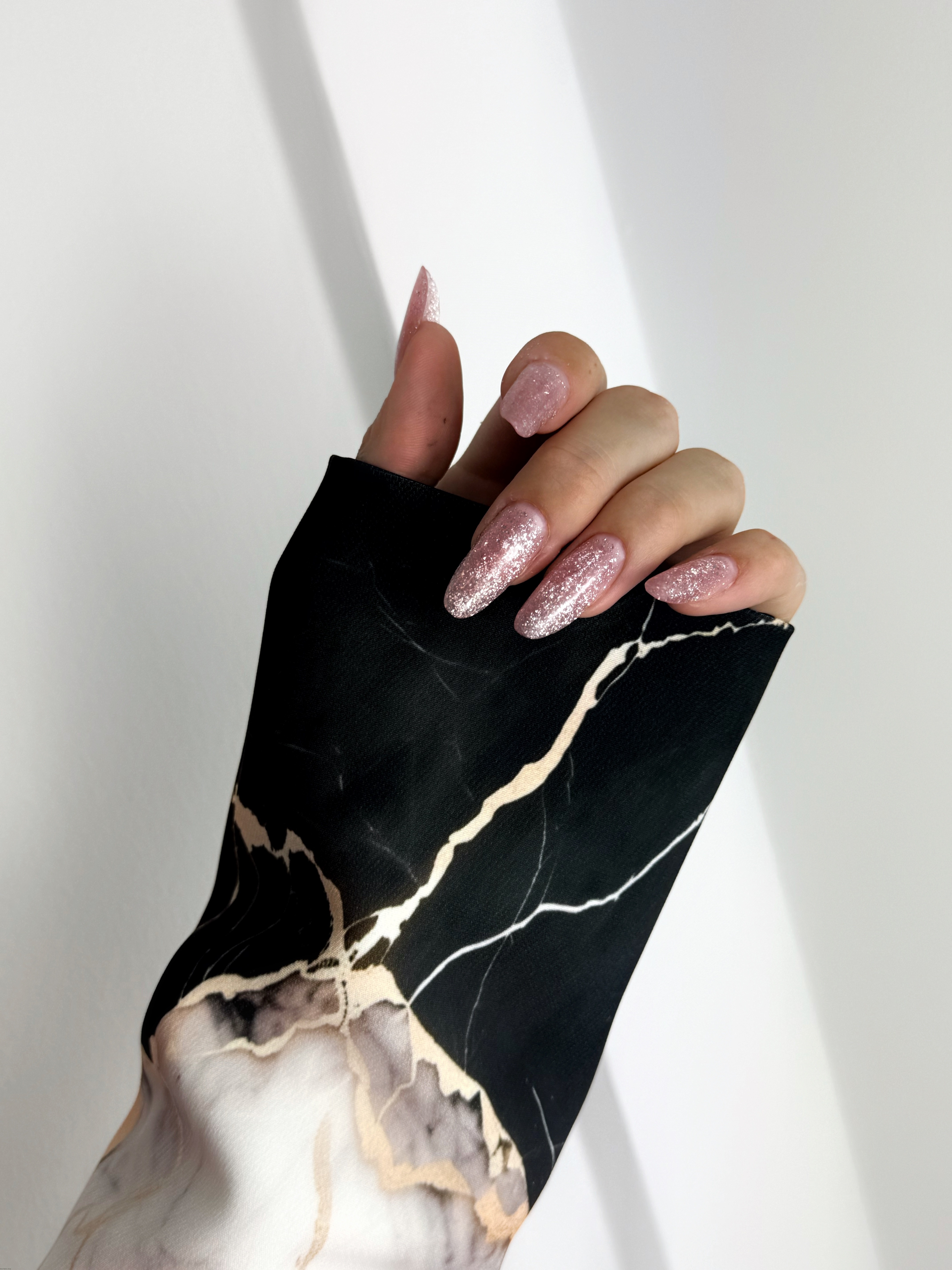 Idealny do sesji zdjęciowych, ten rękaw wprowadza do zdjęć wyrafinowanie i elegancję, stanowiąc doskonałe tło dla piękna paznokci.