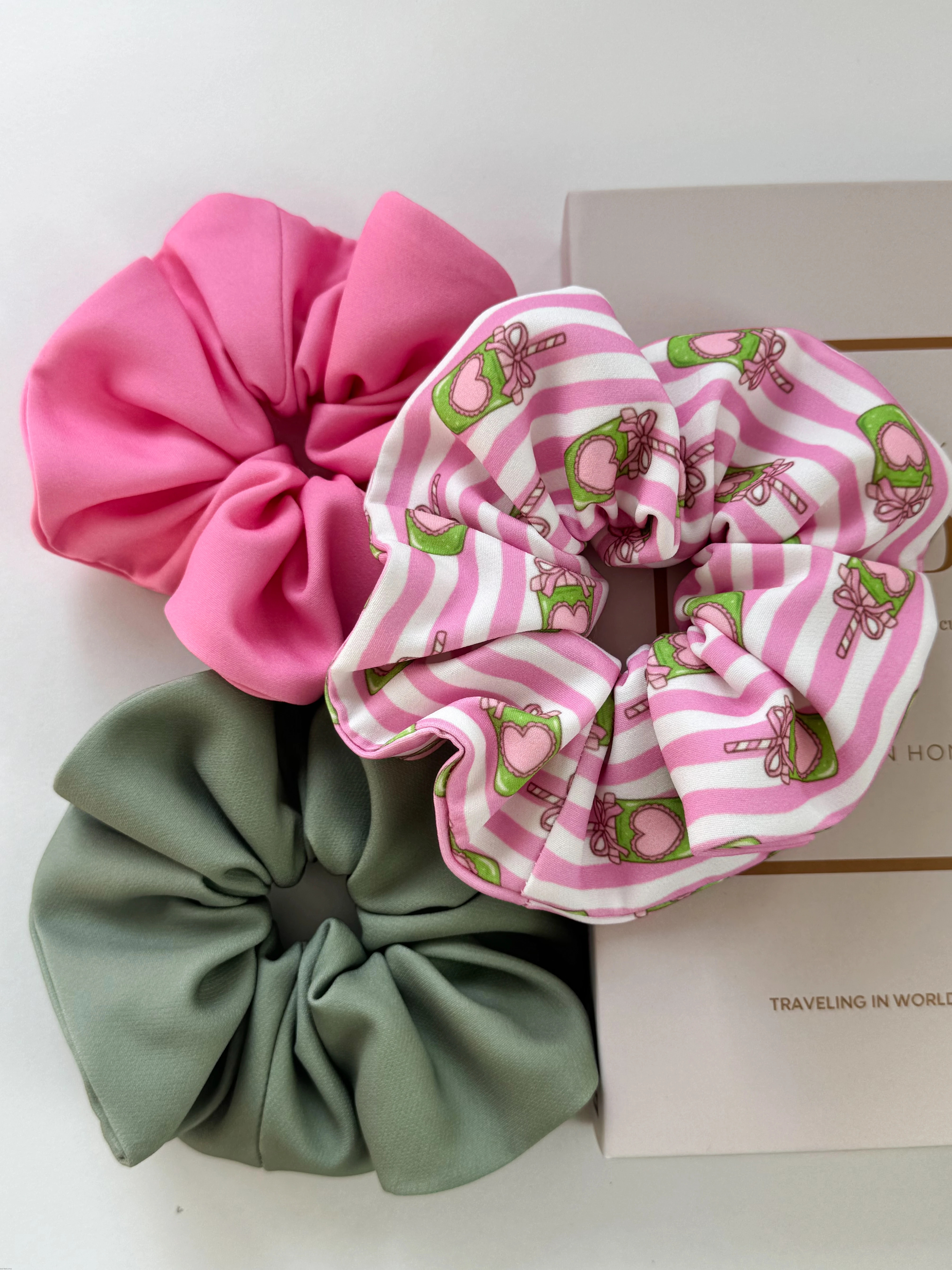 ZESTAW 2+1 SCRUNCHIES PINK MATCHA! XL