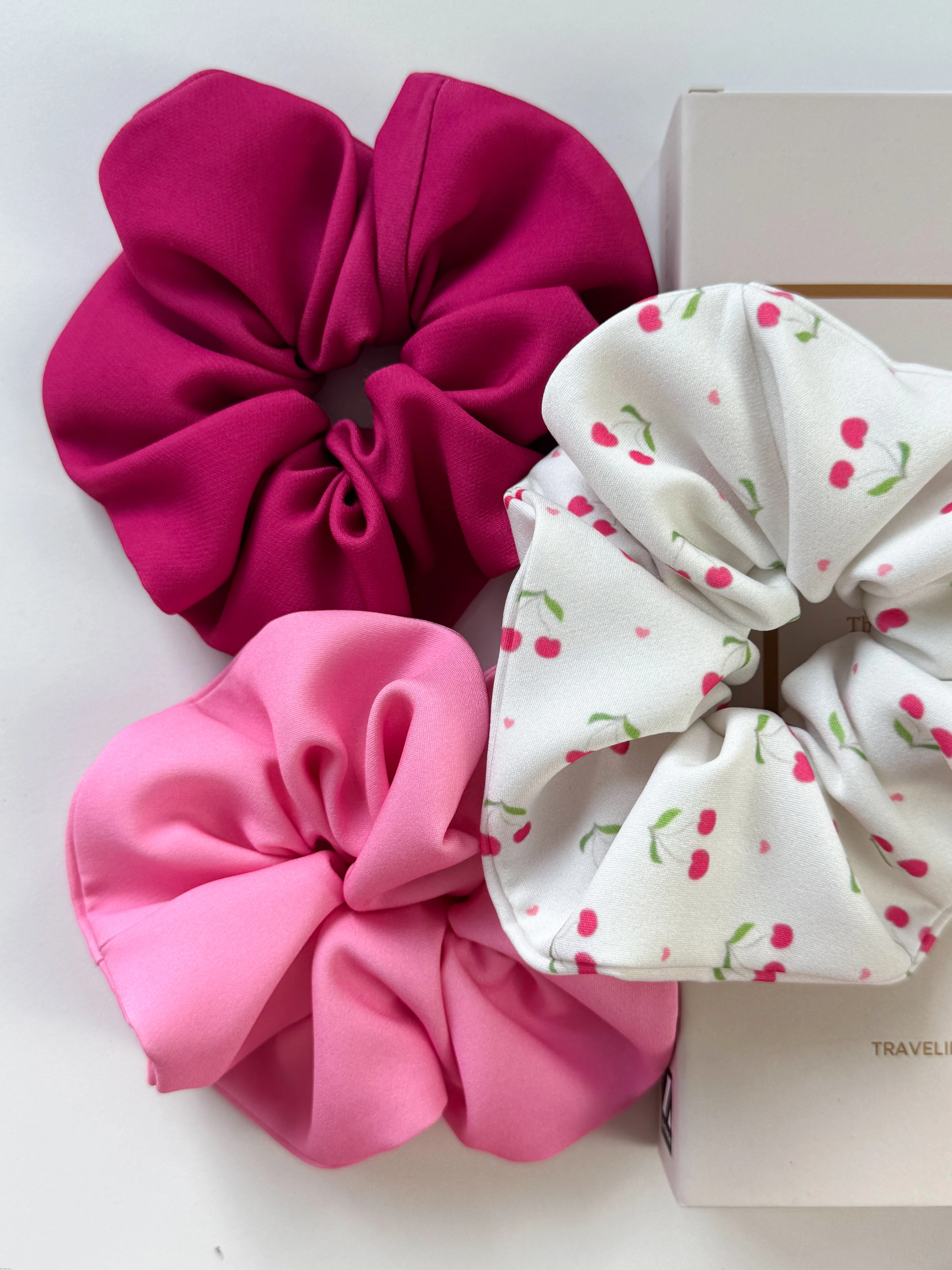 ZESTAW 2+1 SCRUNCHIES RÓŻOWE WISIENKI SERCA XL